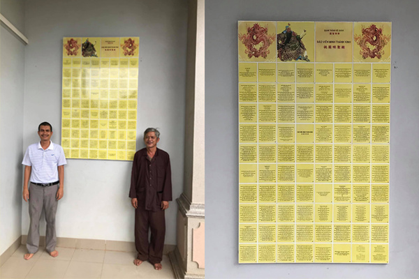 (Ảnh Thầy Tứ chụp cùng Thầy Dũng bên công trình kinh Quan Thánh Đế Quân)