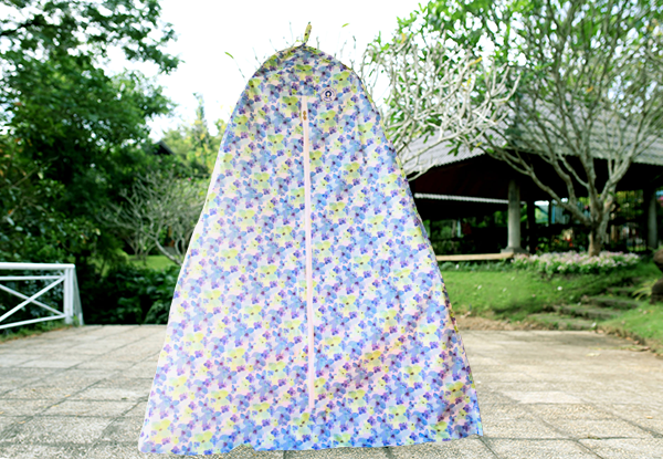 Áo lều hoa được thiết kế theo hình kim tự tháp theo kích thước khung lều và được may bằng loại bạt bố đặc biệt, an toàn vệ sinh và dễ giặt, có khóa thông minh 2 chiều. Không gian trong lều thoáng, không gây nguy hiểm đối với người xông. Có lỗ đối lưu gió, đầy đủ ôxy để thở. Duy trì nhiệt độ nóng liên tục.